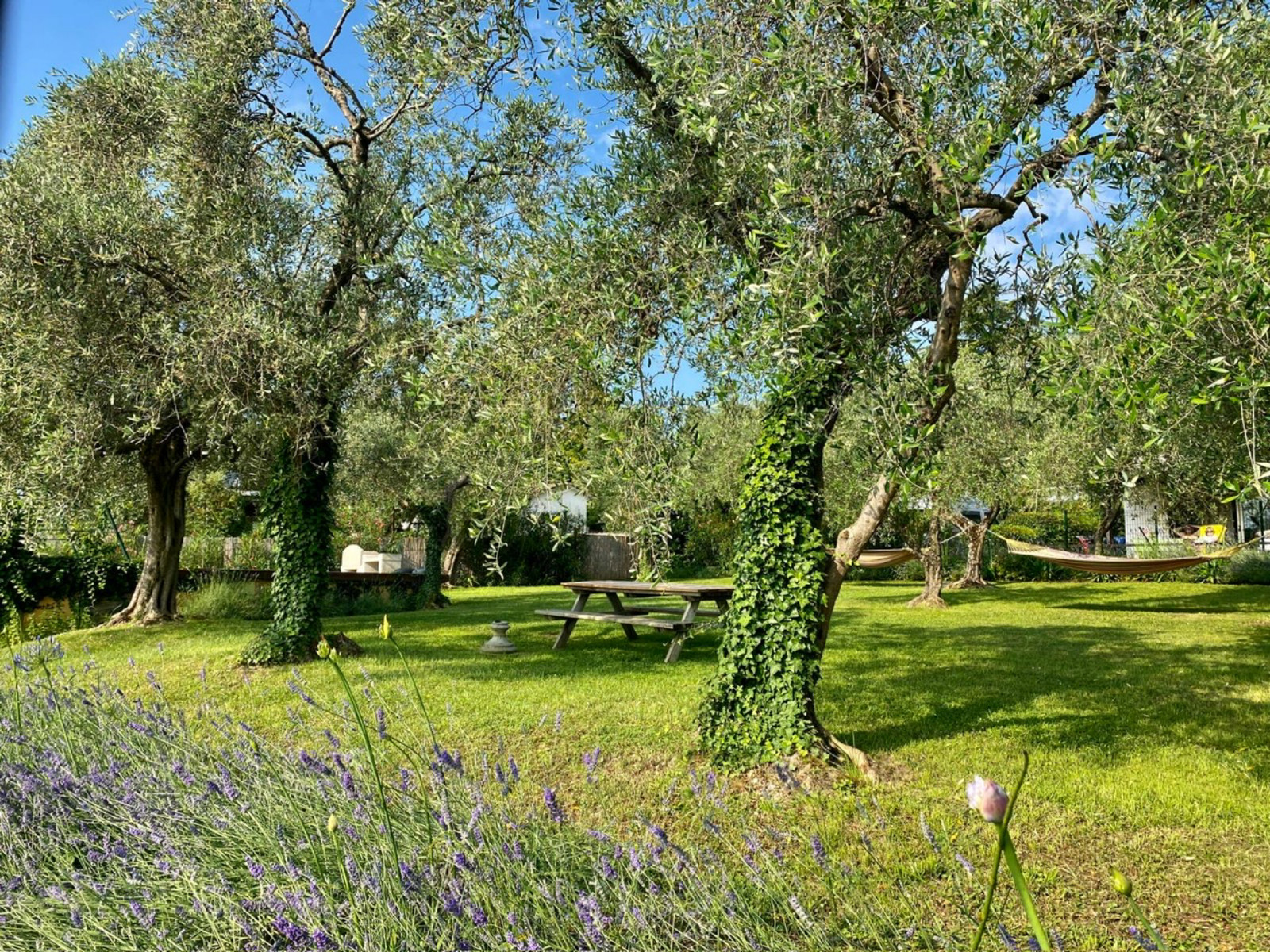 La nostra spiaggia privata è un antico uliveto direttamente sul lago! Grandi antichi ulivi ombreggiano il giardino, un grande tavolo di legno è a disposizione dei nostri ospiti, ed anche una vecchia darsena dove il signor Schindler teneva la sua barca da pescatore. Nella darsena è possibile prendere sdraio ed ombrelloni e lasciare tutte le cose che desiderate, c’è spazio per windsurf, canotti o canoe!